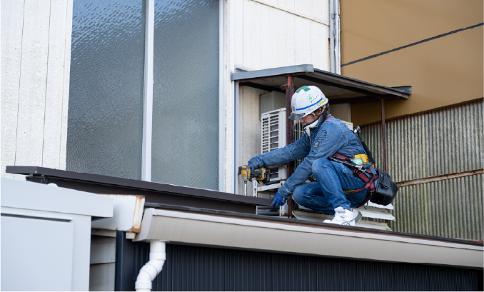 薄鋼板(金属素材)を使用し、屋根や外壁、雨どいなどを自由自在に施工するスペシャリストです。これまでに積み重ねた多数の実績を基に、耐久性と美しさを兼ね備えた「ベストな金属施工」を実現します。